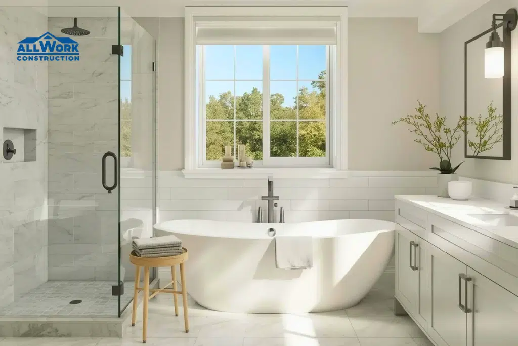 At All Work Construction, we focus on bathroom remodeling in Andover, MA, to make the space more comfortable, functional, and long-lasting, not just better looking. We design places that make living there better every day, whether you require a full bathroom remodel or just some targeted changes.