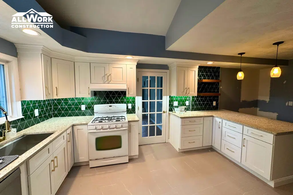 We’ve completed hundreds of kitchen remodeling projects here at All Work Construction throughout Bedford and Southern NH. Our team is licensed, insured, and extremely experienced with anything from some minor updates to full-scale custom kitchen re-do’s. We provide written, up-front estimates, easy payment choices, and exceptional outcomes backed by 5-star reviews.